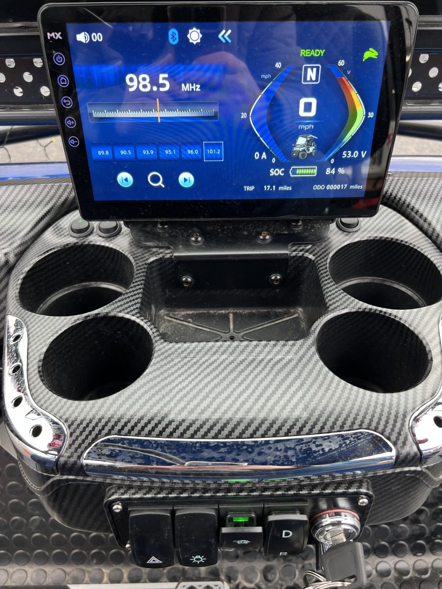 Luxurious Carbon Fiber Style Dash, Locking Glove Compartments, 10.1” Digital Display Multimedia Touch Screen with IP67 Rating, EcoXGear 28” Bluetooth Sound Bar, Bluetooth, Phone, Radio, Music, Back-up Camera, Forward/Neutral/Reverse Switch, USB and 12V Plugs, Multiple Cup Holders, USB Ports & Pre-Wired 12v Switches, Digital Gauges, Key Switch
