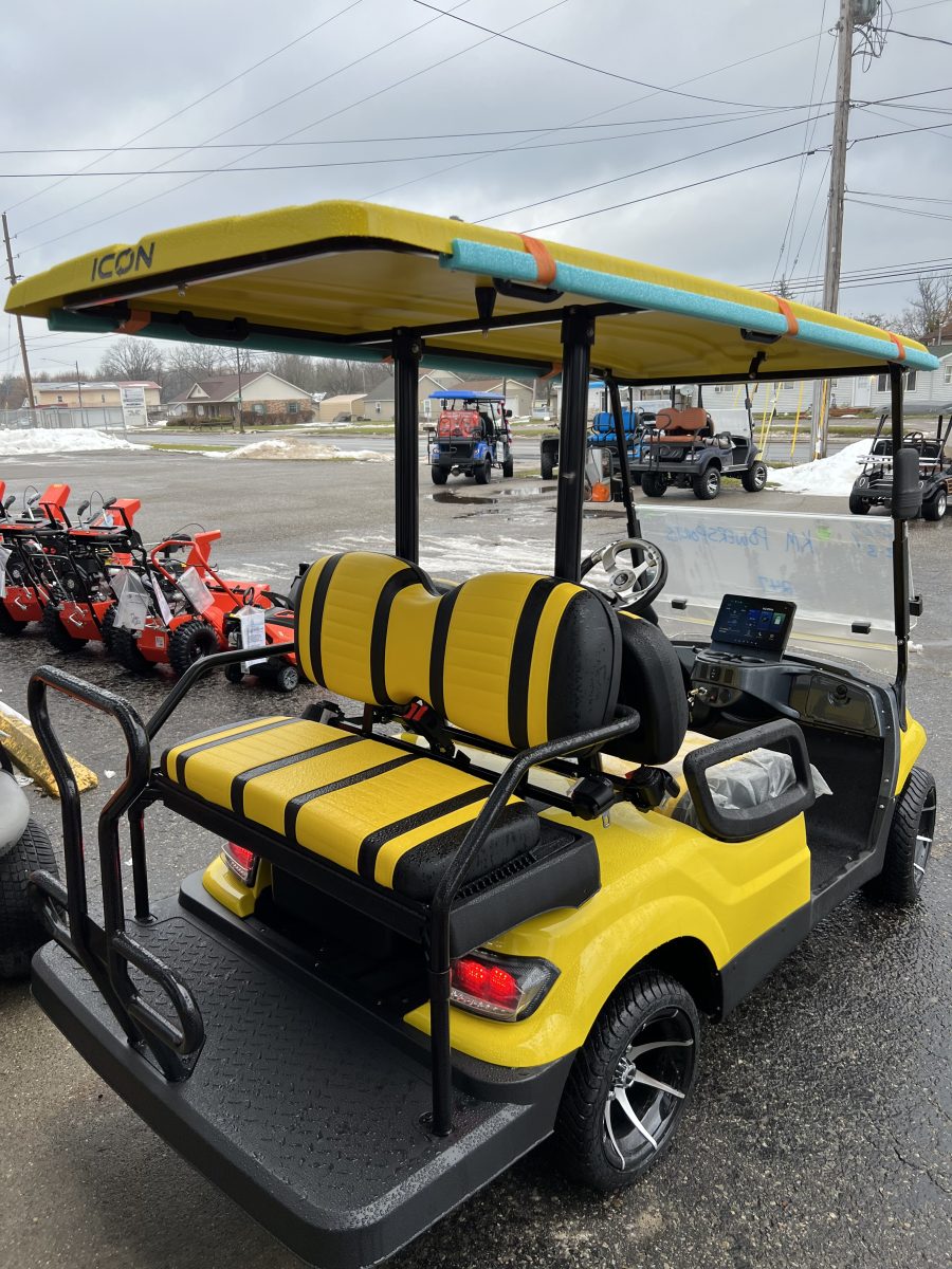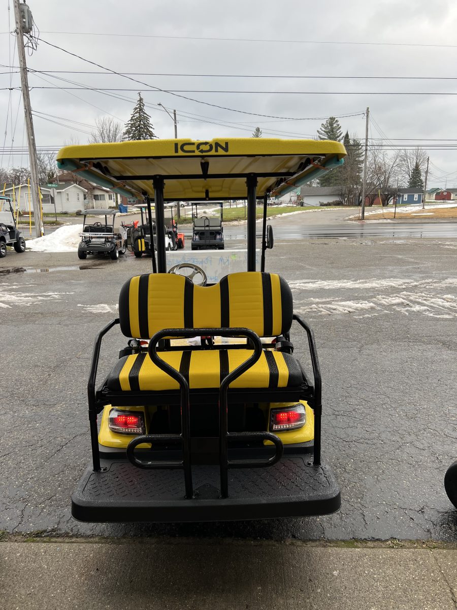 The ICON i40 golf cart is loaded with premium features setting a new standard for residential & commercial transportation solutions. Designed with comfort and class, every journey is as stylish as it is enjoyable. Its spacious and functional four-seater configuration ensures ample room for storage, passengers, and cargo needs with its rear flip down seat. The ICON i40 four-seater golf cart redefines perfection, seamlessly meeting the needs of both personal and corporate needs.
