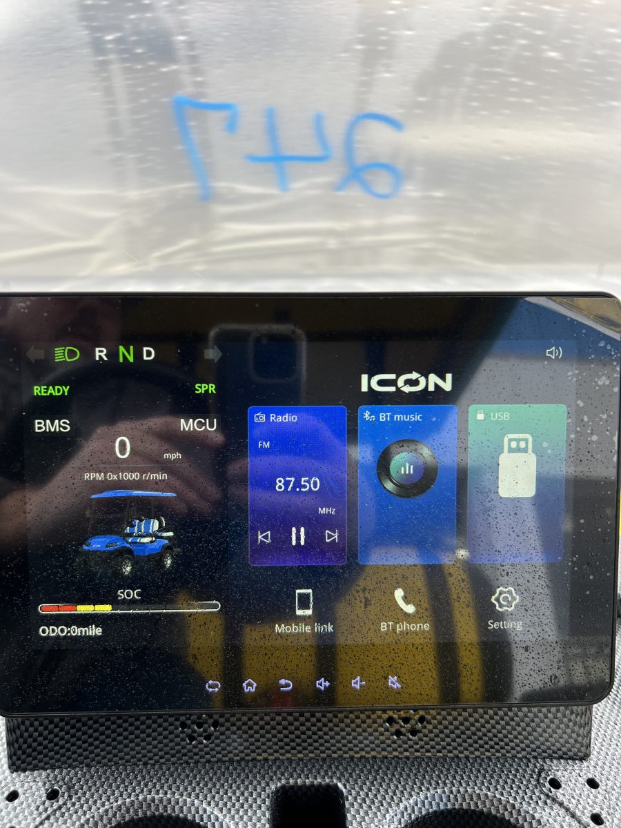 Luxurious Carbon Fiber Style Dash, Locking Glove Compartments, 10.1” Digital Display Multimedia Touch Screen with IP67 Rating, Bluetooth, Phone, Radio, Music, Back-up Camera, Forward/Neutral/Reverse Switch, USB and 12V Plugs, Multiple Cup Holders, Key Switch
