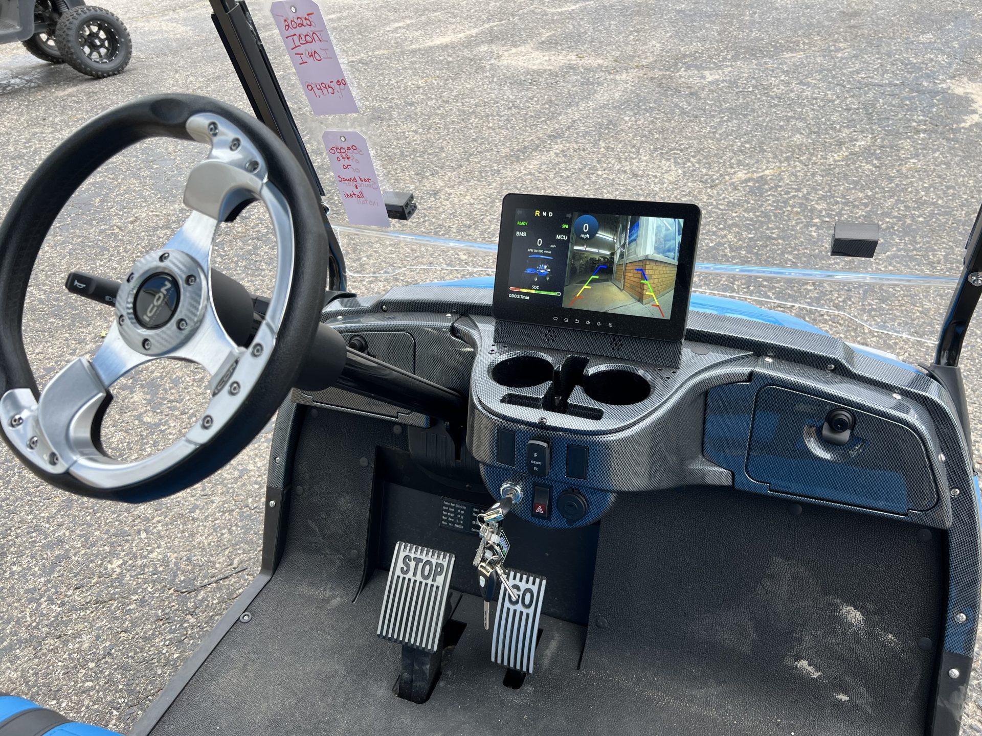Luxurious Carbon Fiber Style Dash, Locking Glove Compartments, 10.1” Digital Display Multimedia Touch Screen with IP67 Rating, Bluetooth, Phone, Radio, Music, Back-up Camera, Forward/Neutral/Reverse Switch, USB and 12V Plugs, Multiple Cup Holders, Key Switch