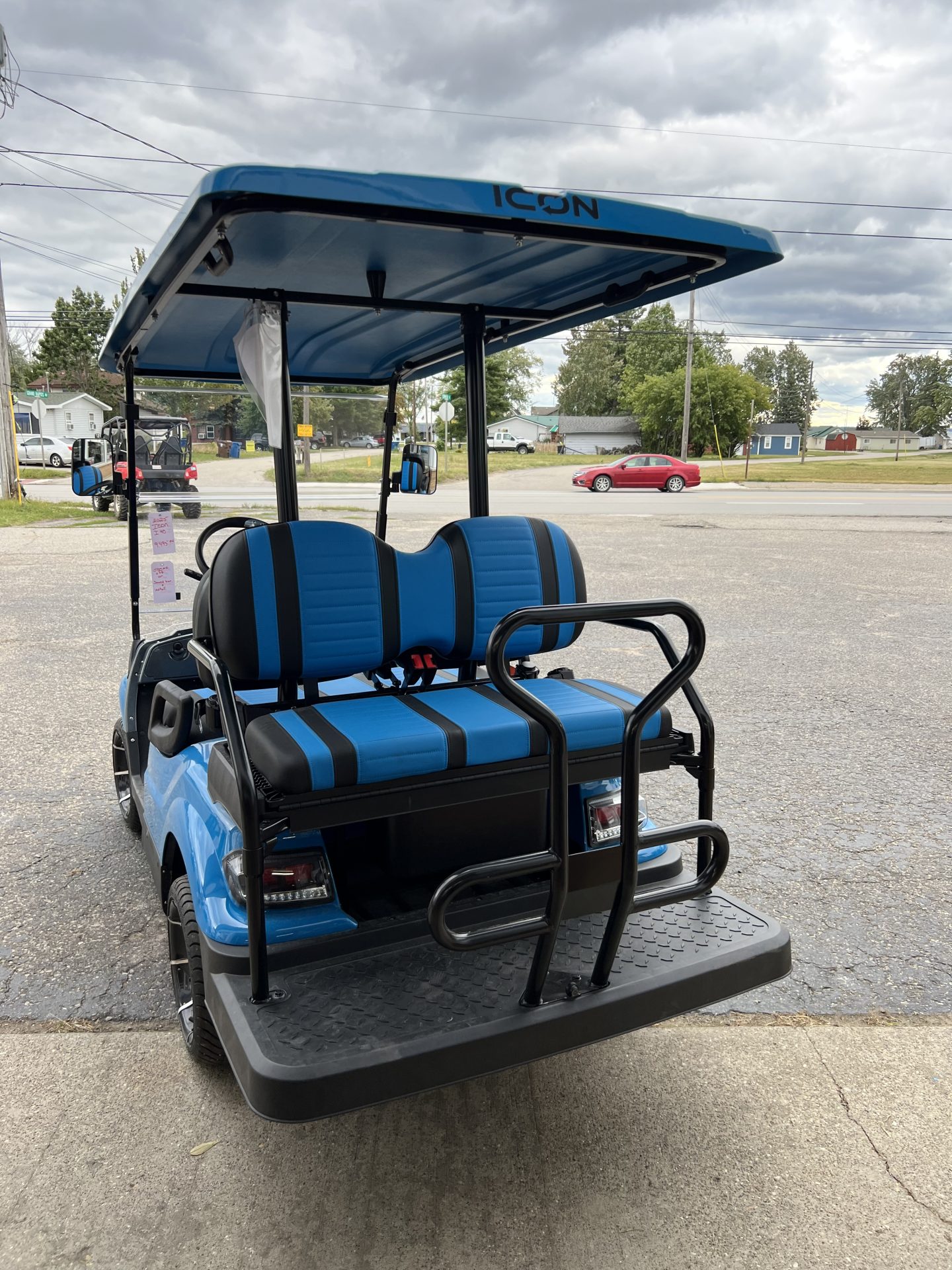 The ICON i40 golf cart is loaded with premium features setting a new standard for residential & commercial transportation solutions. Designed with comfort and class, every journey is as stylish as it is enjoyable. Its spacious and functional four-seater configuration ensures ample room for storage, passengers, and cargo needs with its rear flip down seat. The ICON i40 four-seater golf cart redefines perfection, seamlessly meeting the needs of both personal and corporate needs.