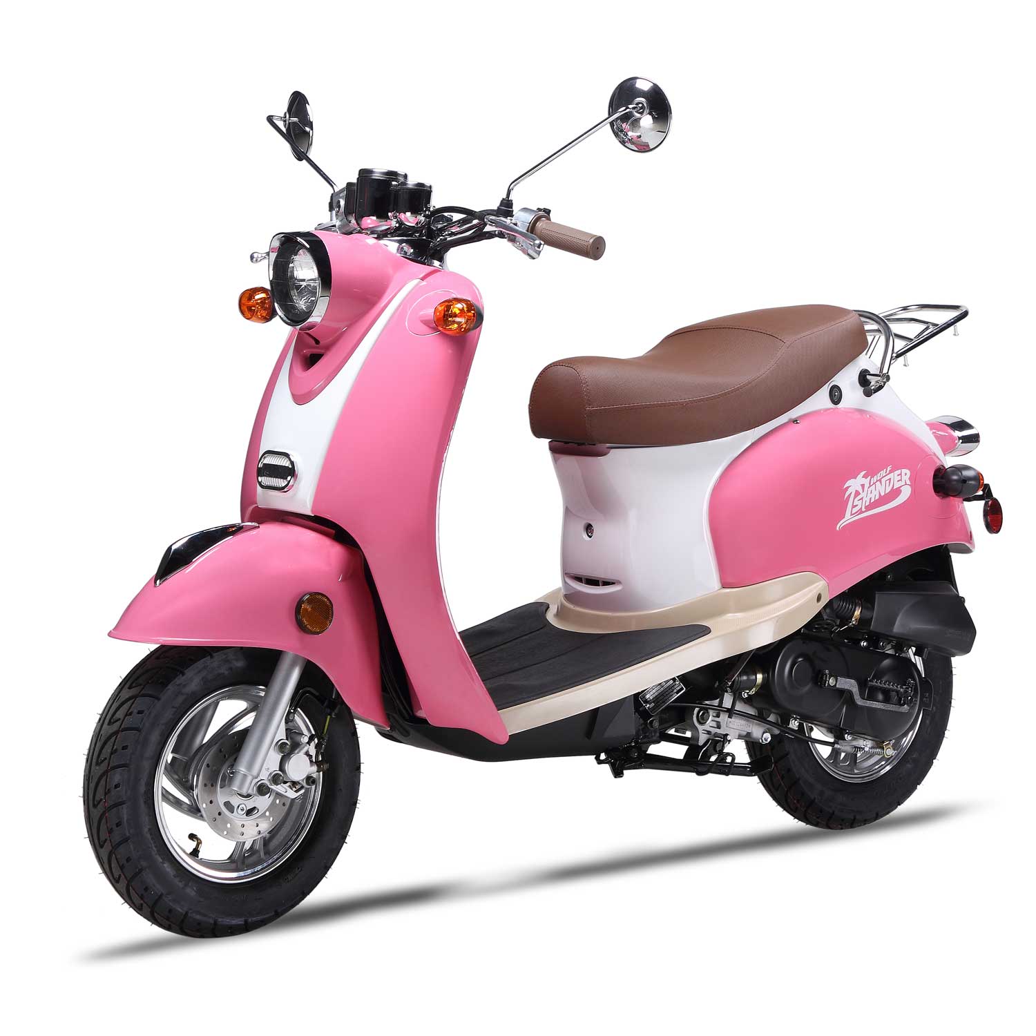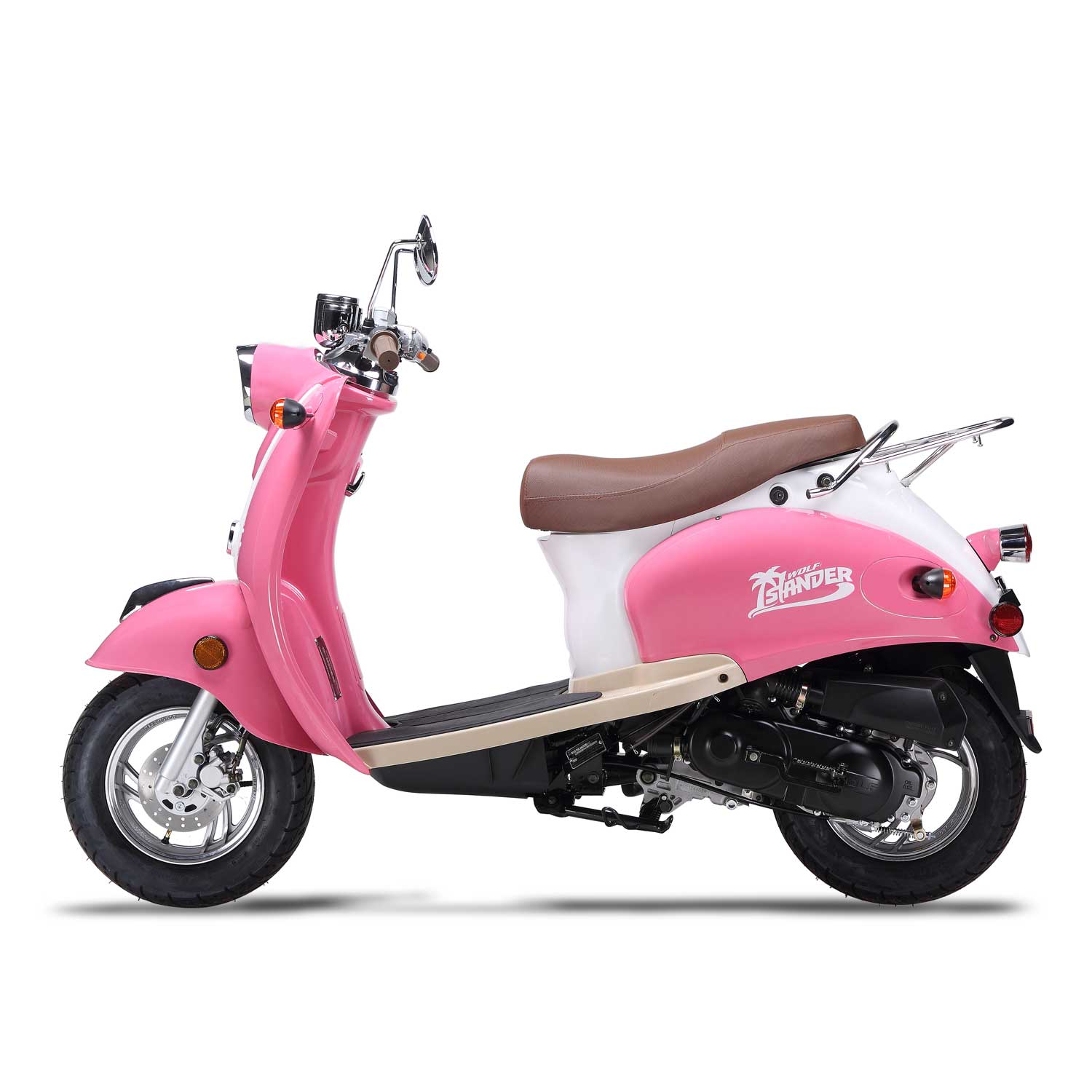 The Islander is Wolf’s economy-retro scooter—but don’t let the word “economy” fool you! This scooter is above average in its class and is built with the same quality parts as our other Wolf scooters. It gets excellent gas mileage and will suit light day-to-day, inner-city travel, no problem! The Islander enjoys long rides on the beach, getting coffee at the local coffee shop, or going to the movies on a Friday night! The Islander is very easy to keep happy, and just needs a little bit of gas, a good washing from time to time, and some tender loving care.