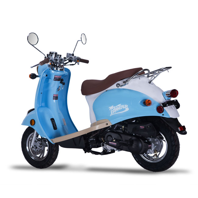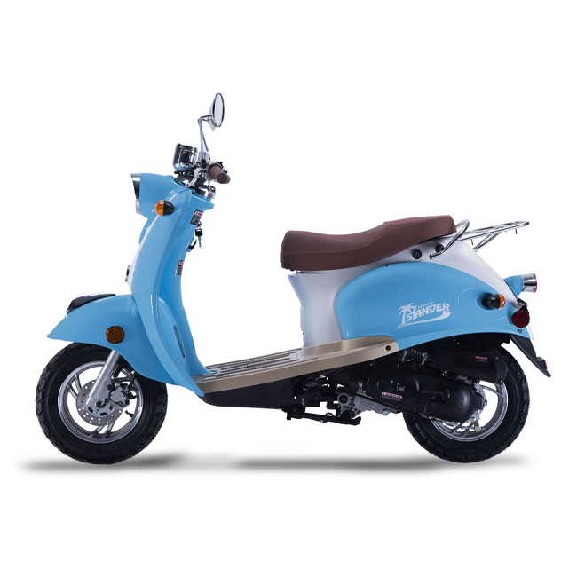 The Islander is Wolf’s economy-retro scooter—but don’t let the word “economy” fool you! This scooter is above average in its class and is built with the same quality parts as our other Wolf scooters. It gets excellent gas mileage and will suit light day-to-day, inner-city travel, no problem! The Islander enjoys long rides on the beach, getting coffee at the local coffee shop, or going to the movies on a Friday night! The Islander is very easy to keep happy, and just needs a little bit of gas, a good washing from time to time, and some tender loving care.