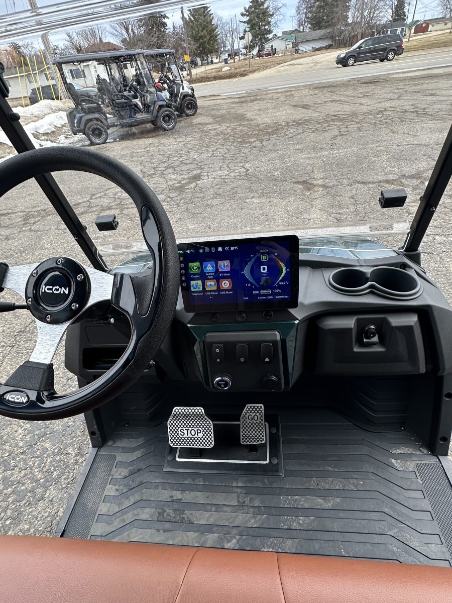 10.1” Digital Multimedia Touchscreen, Integrated Back-up Camera, Built-in SoundExtreme Soundbar, Bluetooth Connectivity for Phone, Music, Radio, Forward/Neutral/Reverse Switch for Easy Control, Locking Glove Compartments, USB Ports and Pre-Wired 12V Switches, Cup Holders, Tilt Steering, Tee & Ball Holders, Secure Key Switch, Foldable DOT Certified Windshield