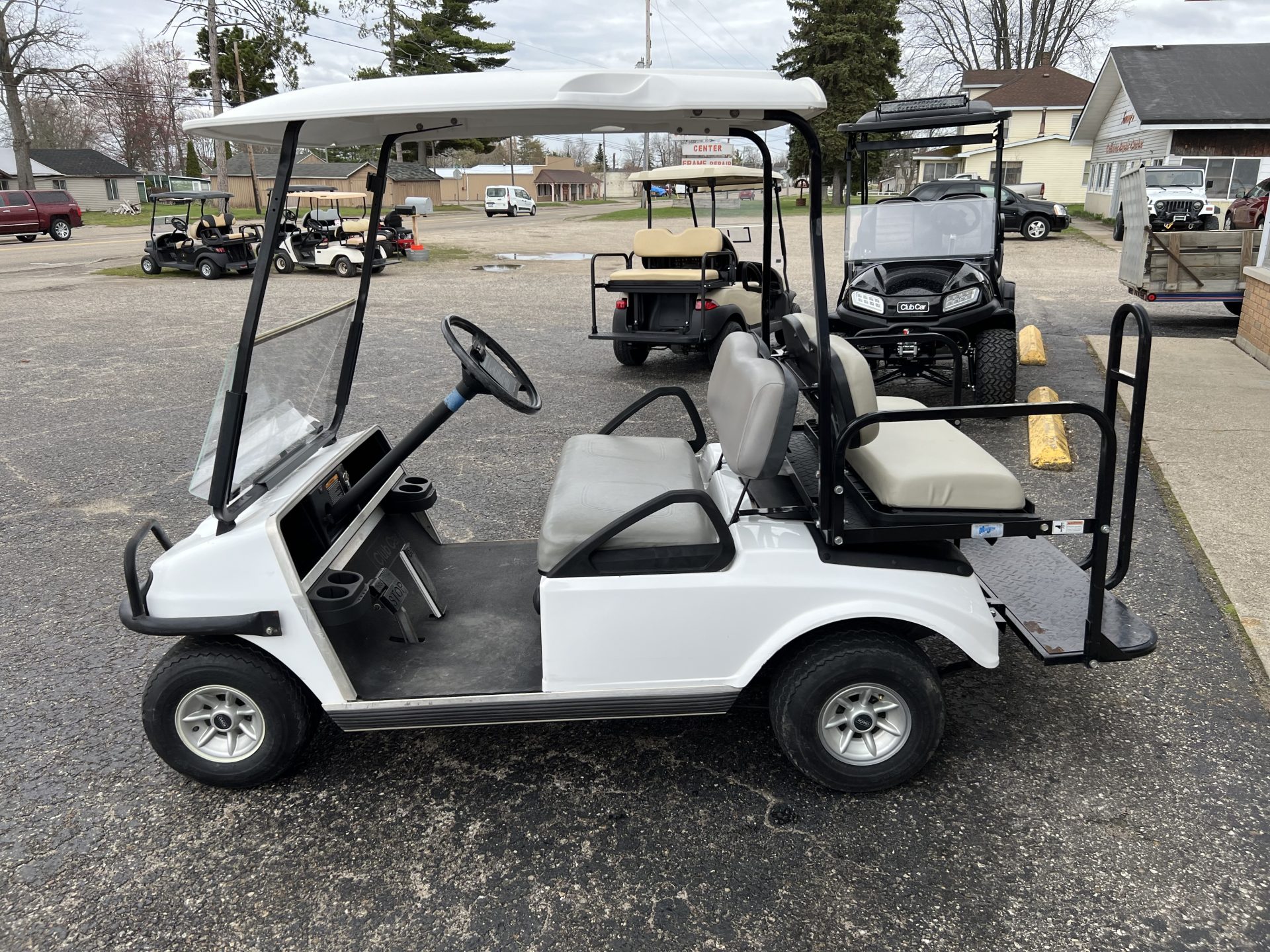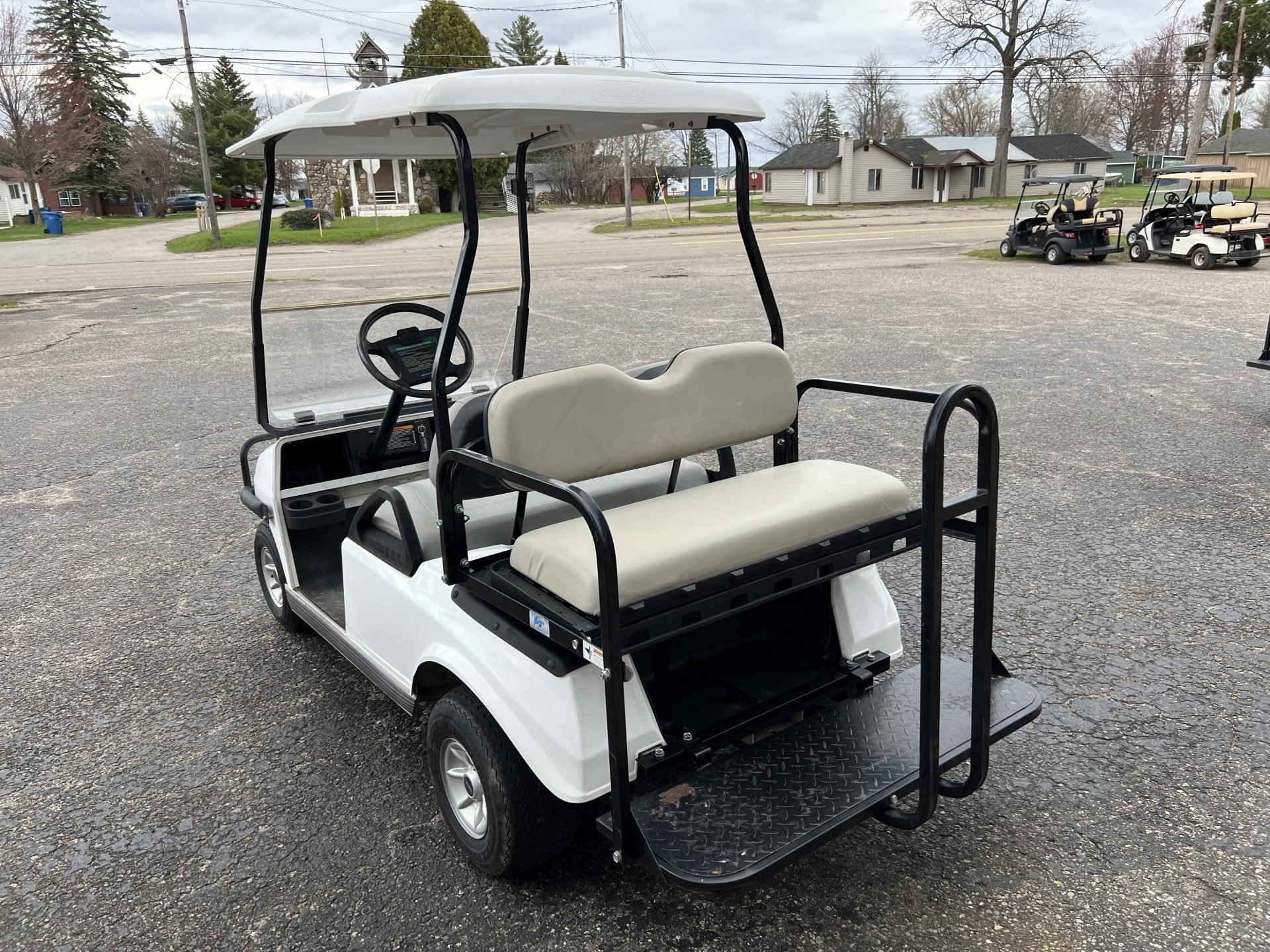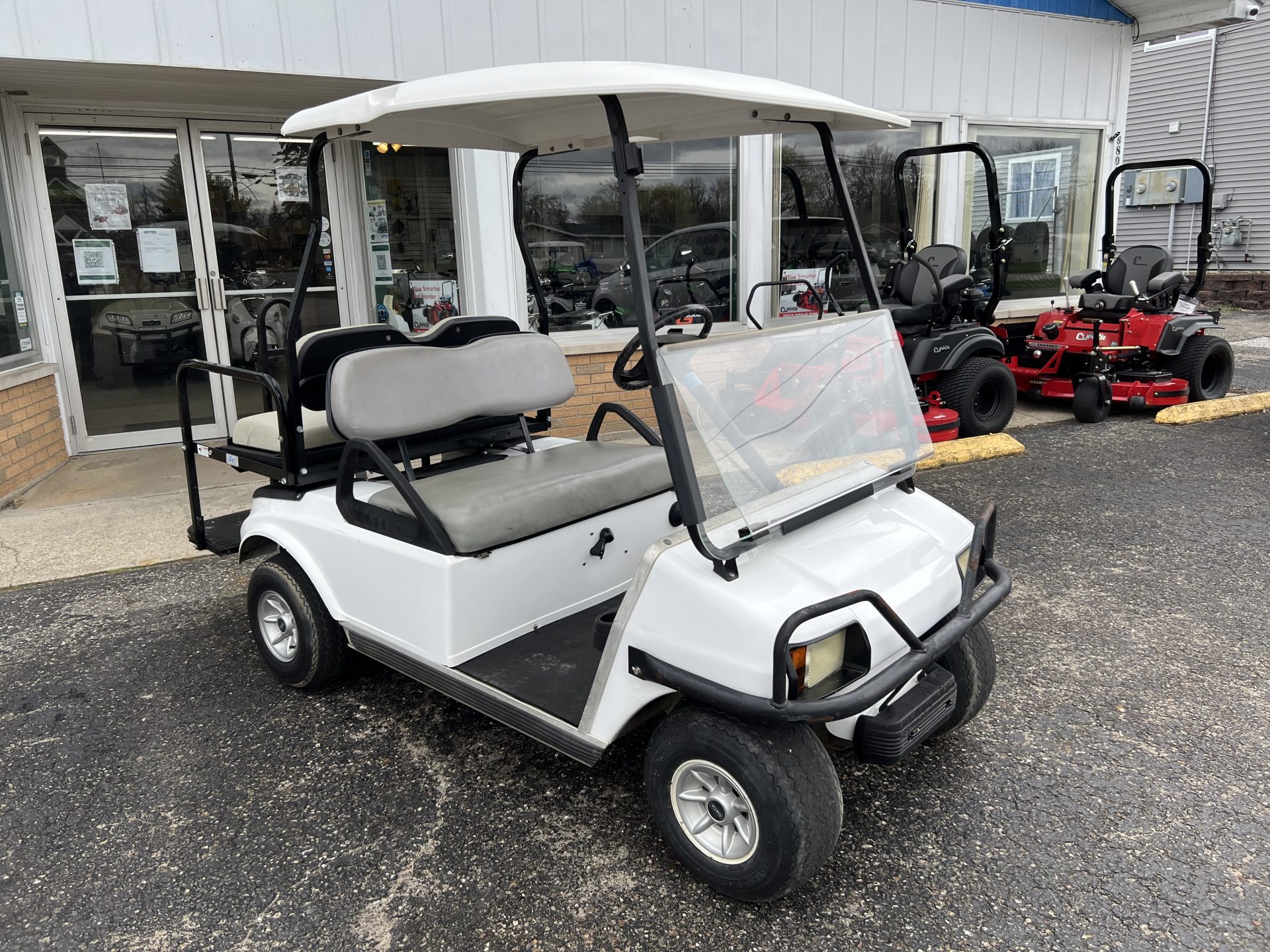 The tried and true Club Car DS all set up with rear seat kit and flip down feature.   Time for us to roll them out of rentals and sell them to make you an affordable golf cart– a gas cart 4 passenger under $5k, awesome!