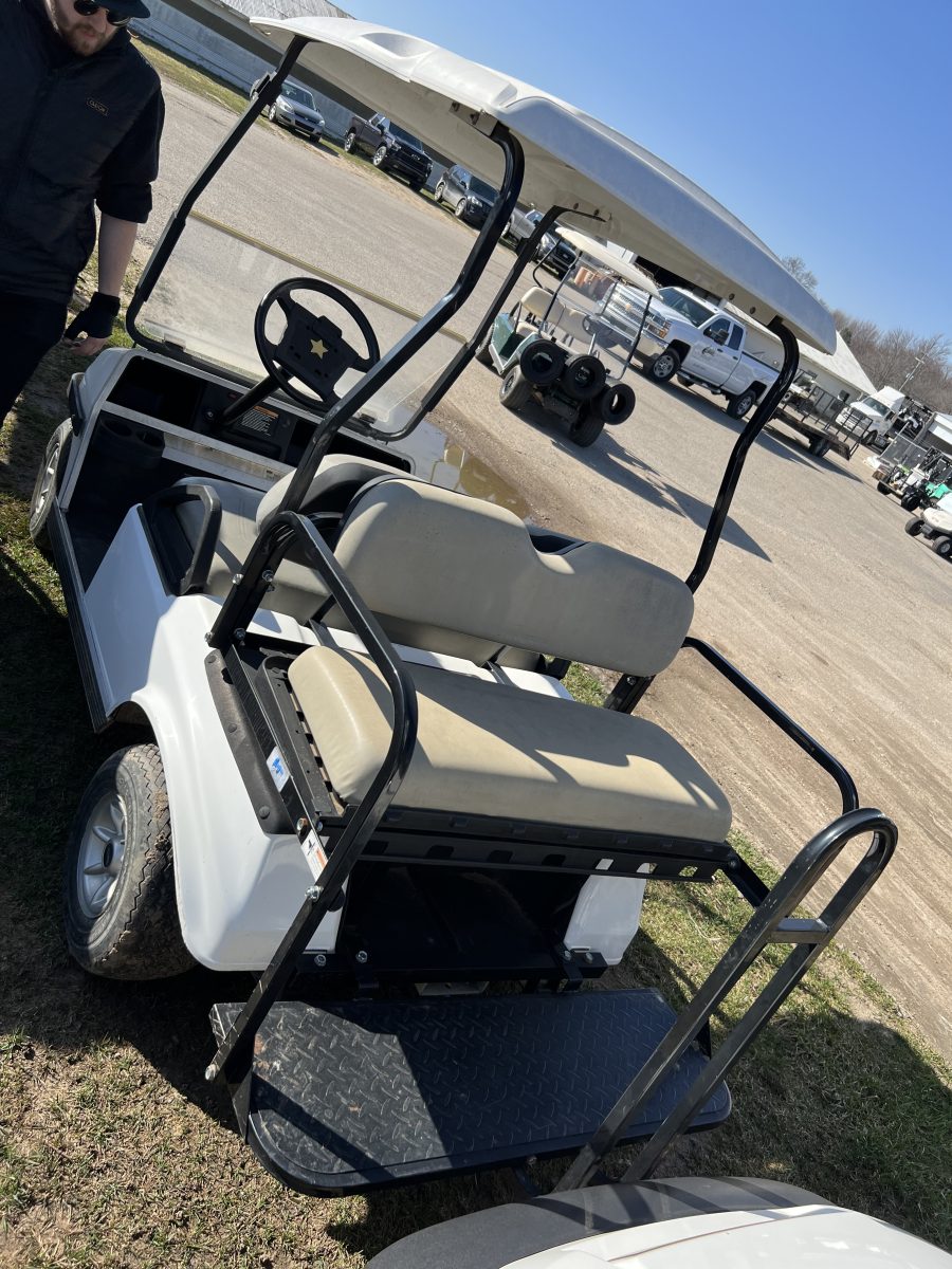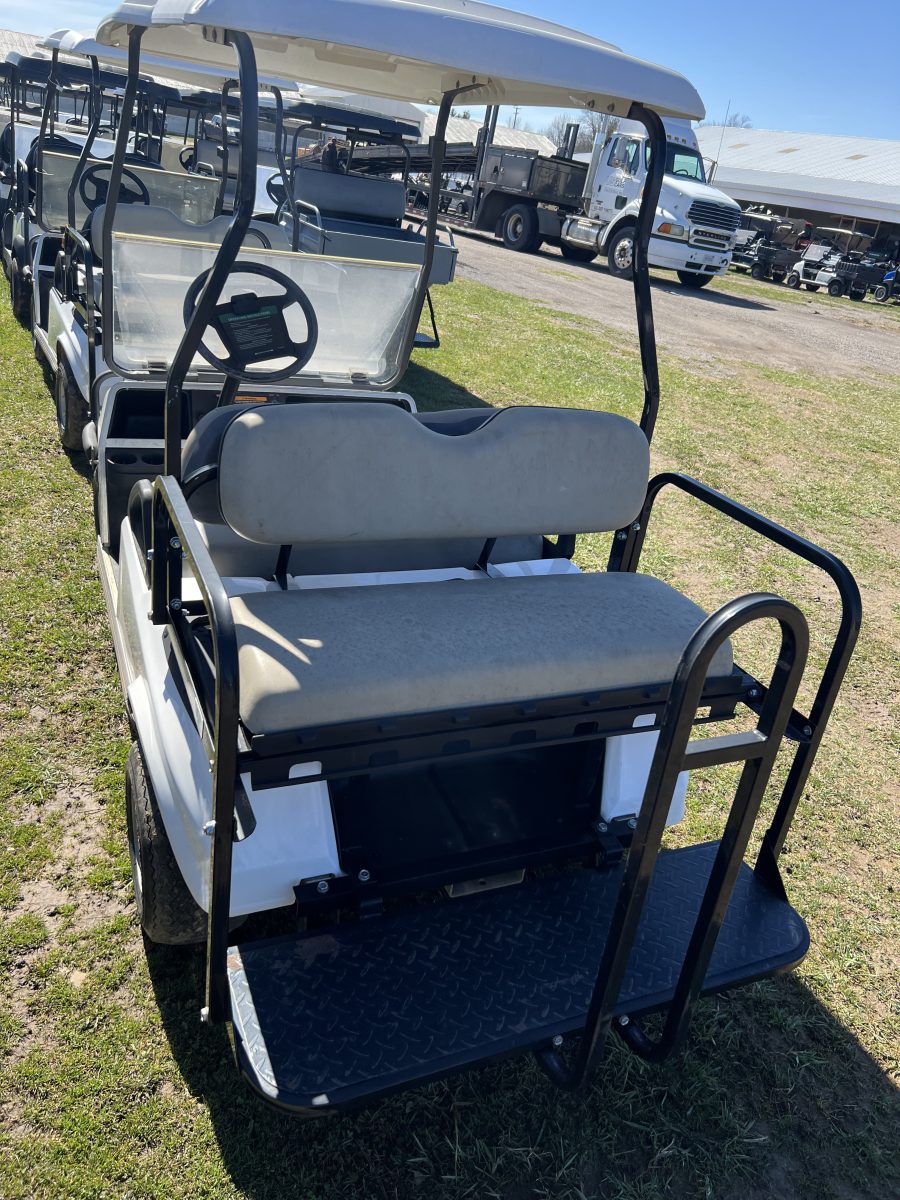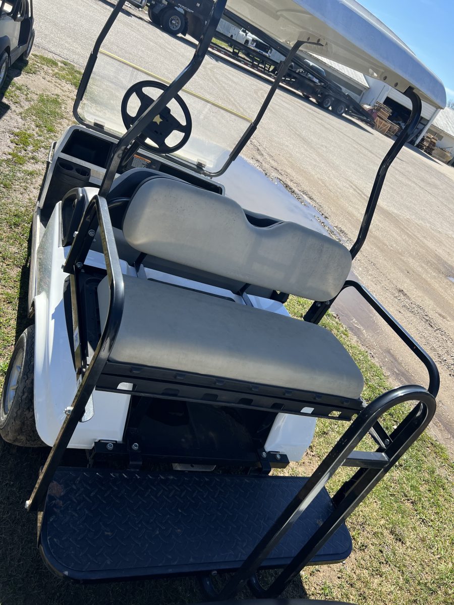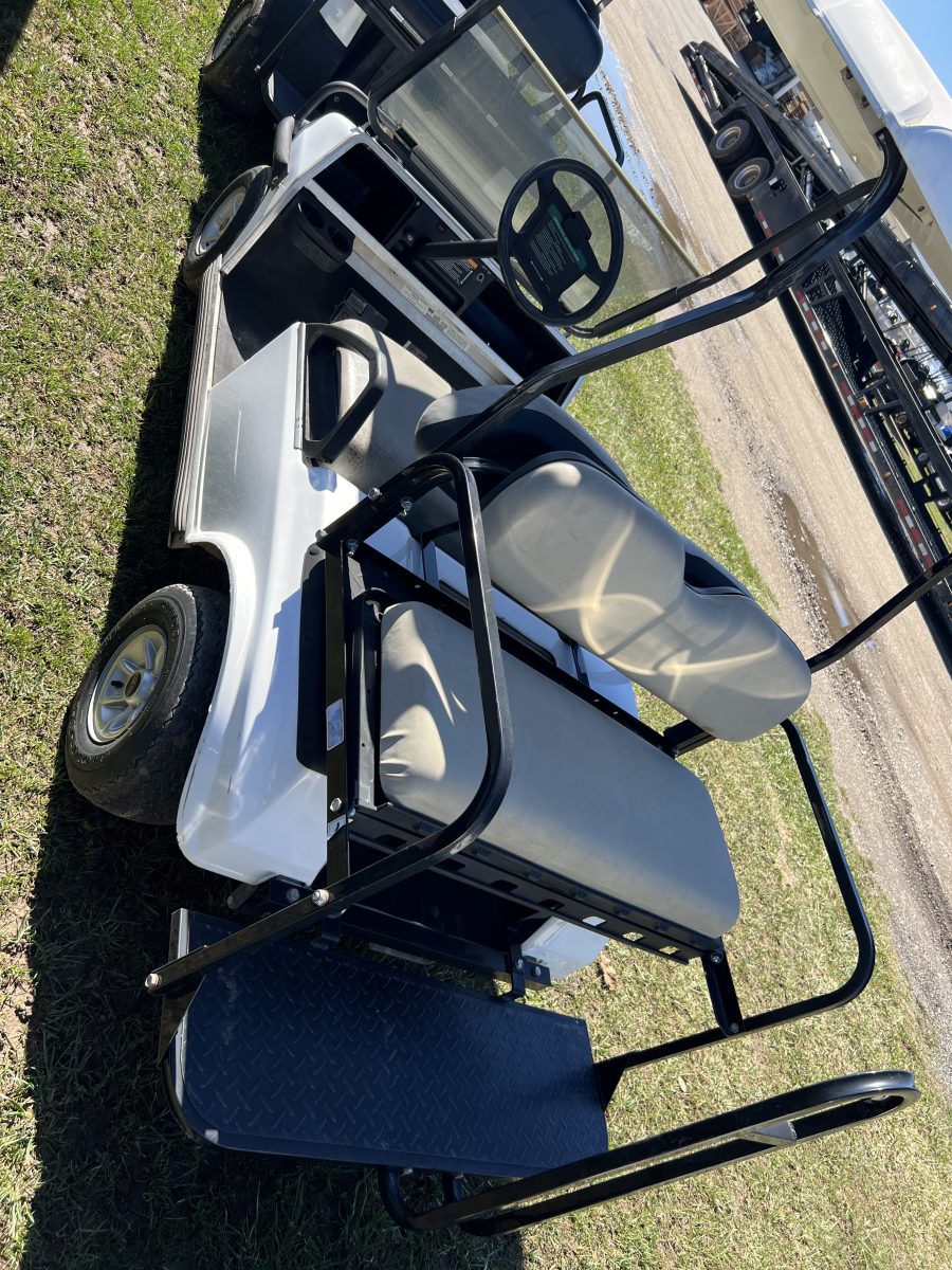 The tried and true Club Car DS all set up with rear seat kit and flip down feature.   Time for us to roll them out of rentals and sell them to make you an affordable golf cart– a gas cart 4 passenger under $5k, awesome!