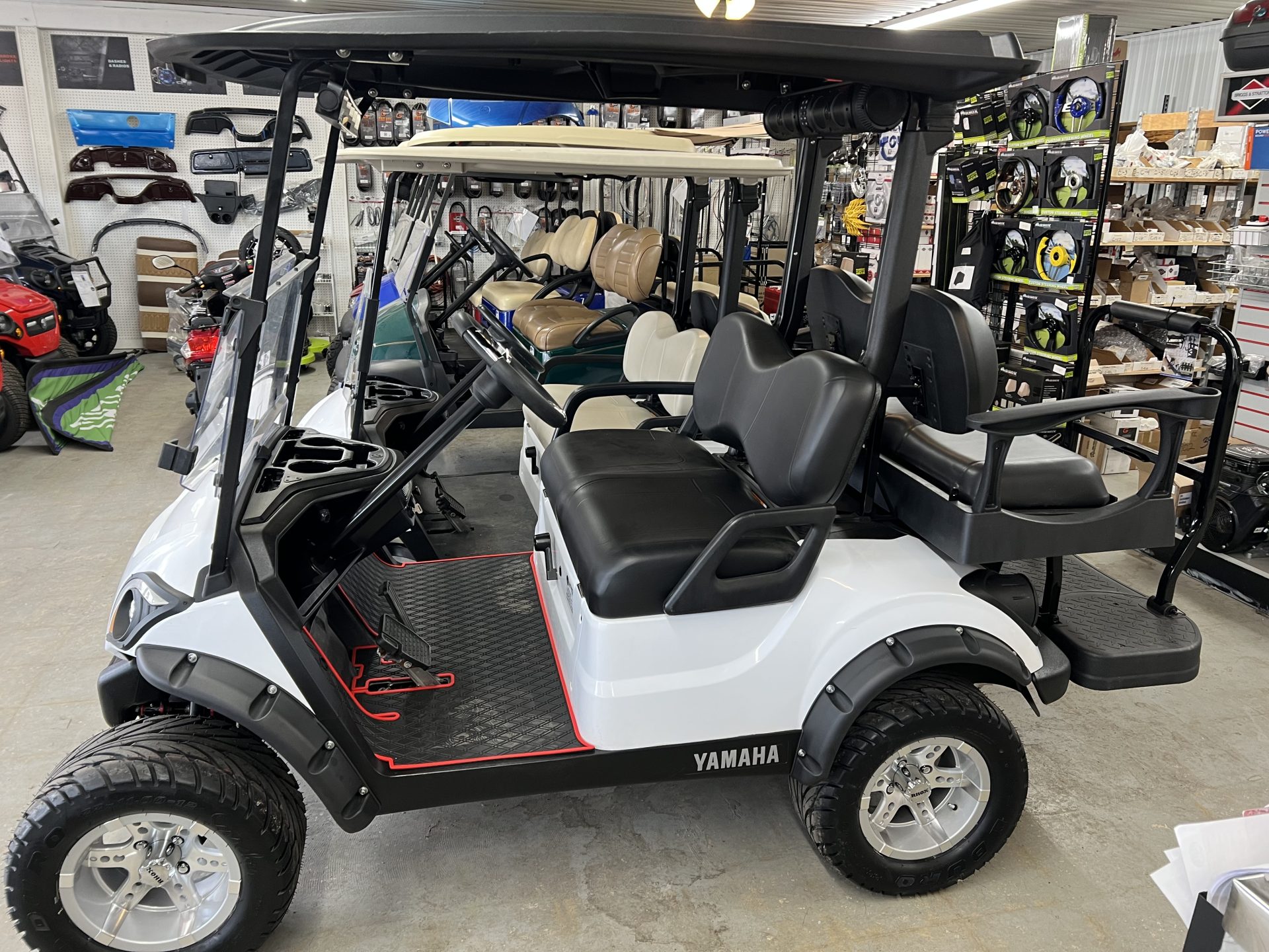 Custom 2020 lifted Yamaha EFI Quietech gas golf cart. Cart is fuel injected with 4 wheel independent suspension.